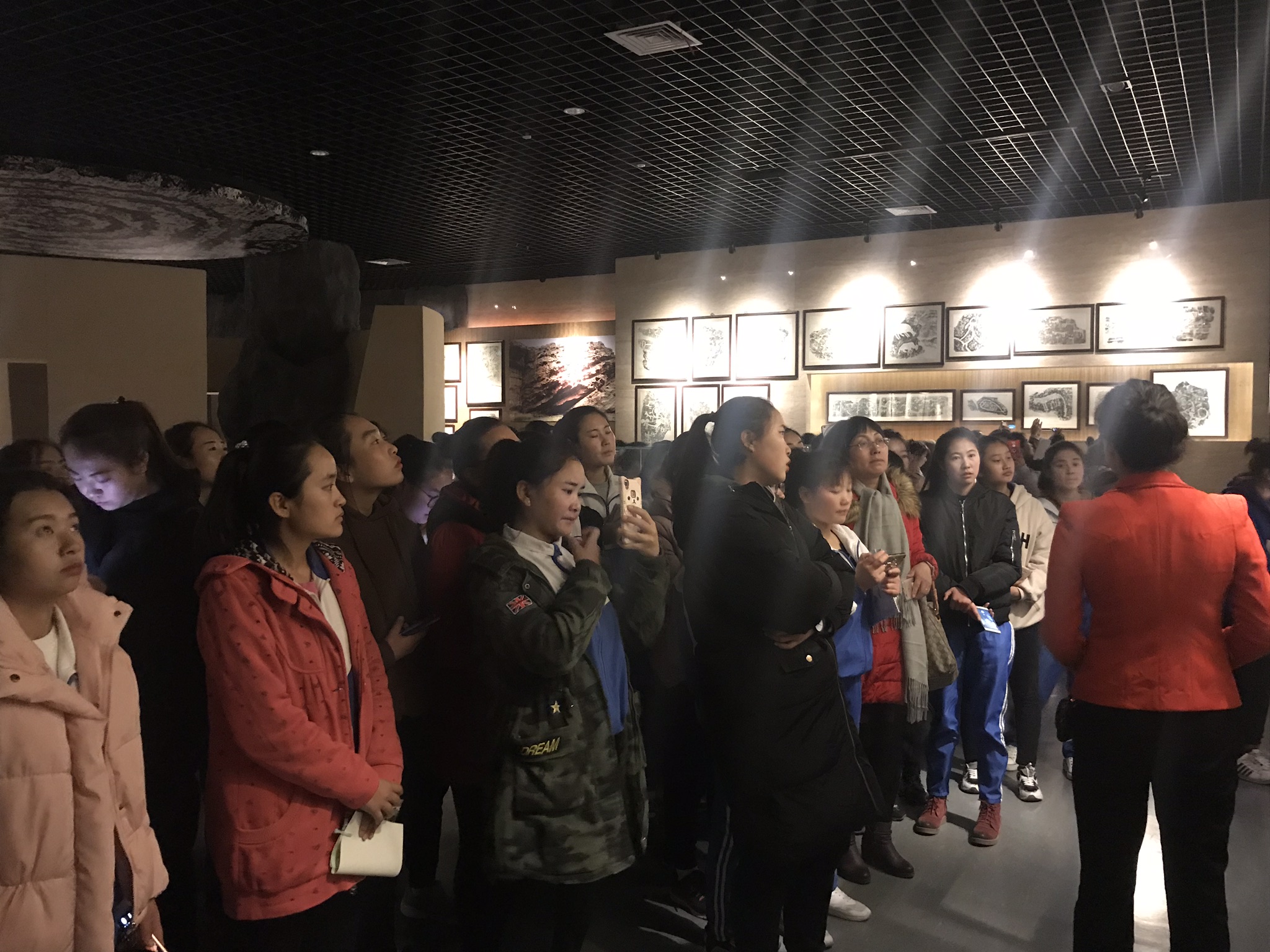 在宁夏博物馆,师生在解说员的带领下观看了石刻史书、红旗漫卷和回乡漫步三个展厅。石刻史书展厅位于宁夏博物馆一楼西侧,通过大量实物、拓片、图片等,师生感受到了贺兰山岩画深刻魅力与丰富内涵。红旗漫卷展厅位于宁夏博物馆二楼西侧,师生通过聆听和观看学习了宁夏早期革命活动、红军长征、西征、抗日战争、解放战争、抗美援朝等方面的宁夏革命史。回乡漫步展厅位于宁夏博物馆三楼东南侧,师生通过文物、照片、文字、模型等展品,进一步了解宁夏回族在宗教、生活、文化各个方面丰富多彩的民族风格。