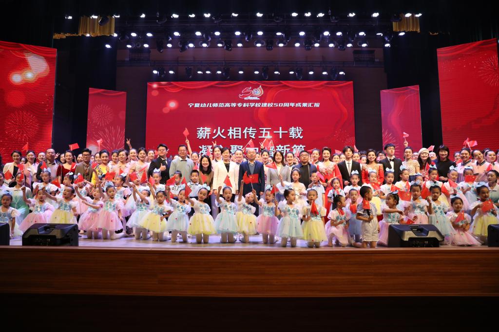 潮平两岸阔,风正好扬帆。站在新的历史起点上,学校继续坚持党的全面领导,以习近平新时代中国特色社会主义思想为指导,全面贯彻党的教育方针,在铸牢中华民族共同体意识中彰显新担当,在推进“双高”计划中实现新突破,在服务教育强区中作出新贡献,在建设教育强国中展现新作为!五十载弦歌不辍,新时代再谱华章,全体幼专人将以建校50周年为新的起点,不忘初心、牢记使命,砥砺前行、接续奋斗,回答好“教育强国,教育强区,教育强市”的时代答卷,为以中国式现代化全面推进中华民族伟大复兴贡献宁夏幼专的智慧和力量!