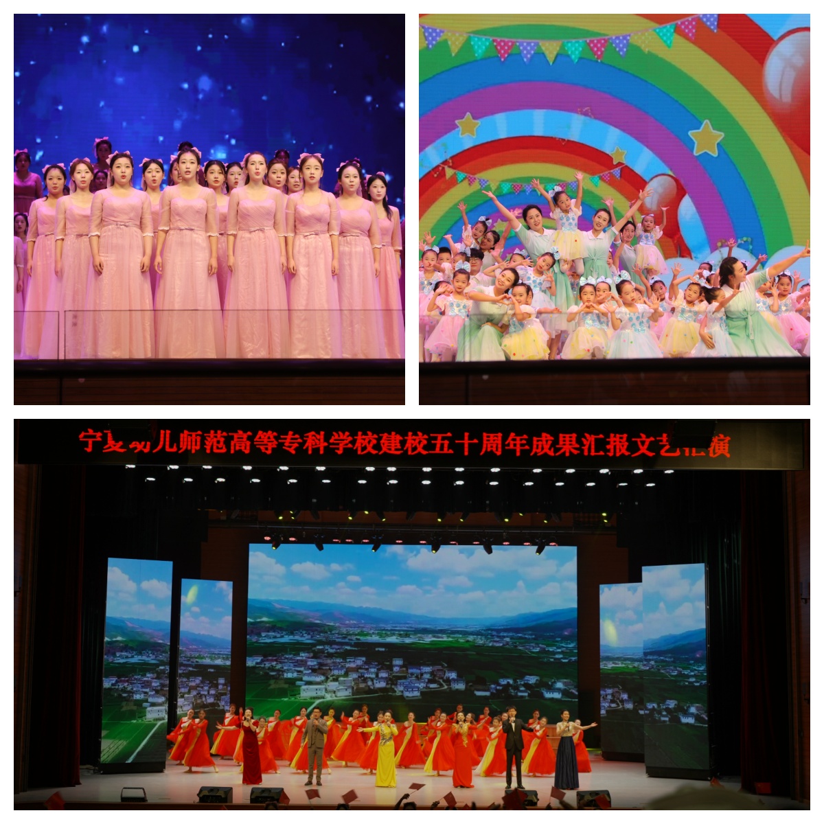 金秋时节,硕果盈枝。2025年10月16日,宁夏幼儿师范高等专科学校校园内彩旗飘扬,喜庆氛围浓厚。电子屏上循环播放学校五十年的发展历程影像。全校师生齐聚一堂,共同参加建校50周年成果汇报大会,回顾办学初心,总结发展成就,擘画未来蓝图。建校50周年成果汇报大会在学校报告厅举行,学校党委班子成员、中层干部、全体教职工及学生代表现场参加,其他学生通过直播观看。