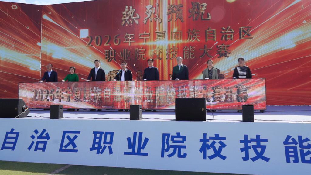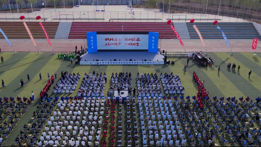 春风浩荡启新程,技耀青春展华章。4月8日上午,2026年自治区职业院校技能大赛开幕式在我校隆重举行。本次大赛由自治区教育厅、工业和信息化厅、财政厅、人力资源和社会保障厅、总工会、宁夏中华职业教育社共同举办。区市相关部门领导、各兄弟院校代表及我校师生代表参加了开幕式。