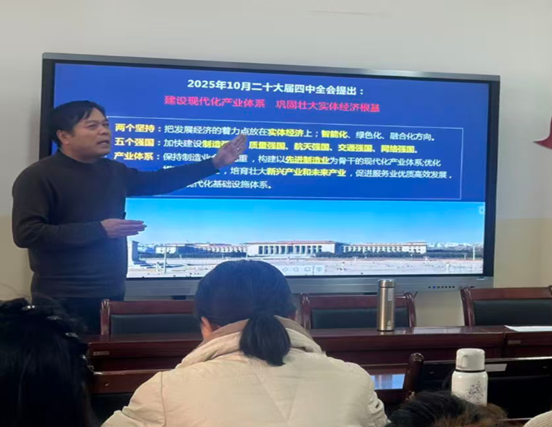 马金虎同志的党课紧紧围绕学习贯彻习近平总书记在党的二十届四中全会上的重要讲话和全会精神,深刻阐释了党的二十届四中全会核心内容,我国在现阶段取得的重大成就,以及未来发展时期的指导思想、重大原则和主要目标。 结合学校当前重点工作,从一体推进教育科技人才协同发展关键步骤到全面落实立德树人根本任务,以及办好人民满意的高质量教育等方面进行系统宣讲。