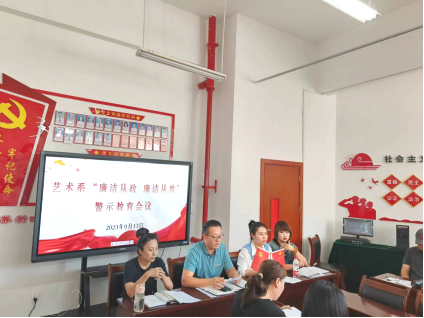 为深入学习贯彻习近平总书记关于廉洁文化建设的重要论述,全面落实二十届中央纪委二次全会、自治区纪委十三届二次全会及市纪委十五届三次全会和2023年区市教育系统党风廉政建设会议安排部署,根据校党委《关于开展“廉洁文化进校园”系列活动的通知》文件要求,2023年9月13日,艺术系开展“廉洁从政 廉洁从教”警示教育会议。